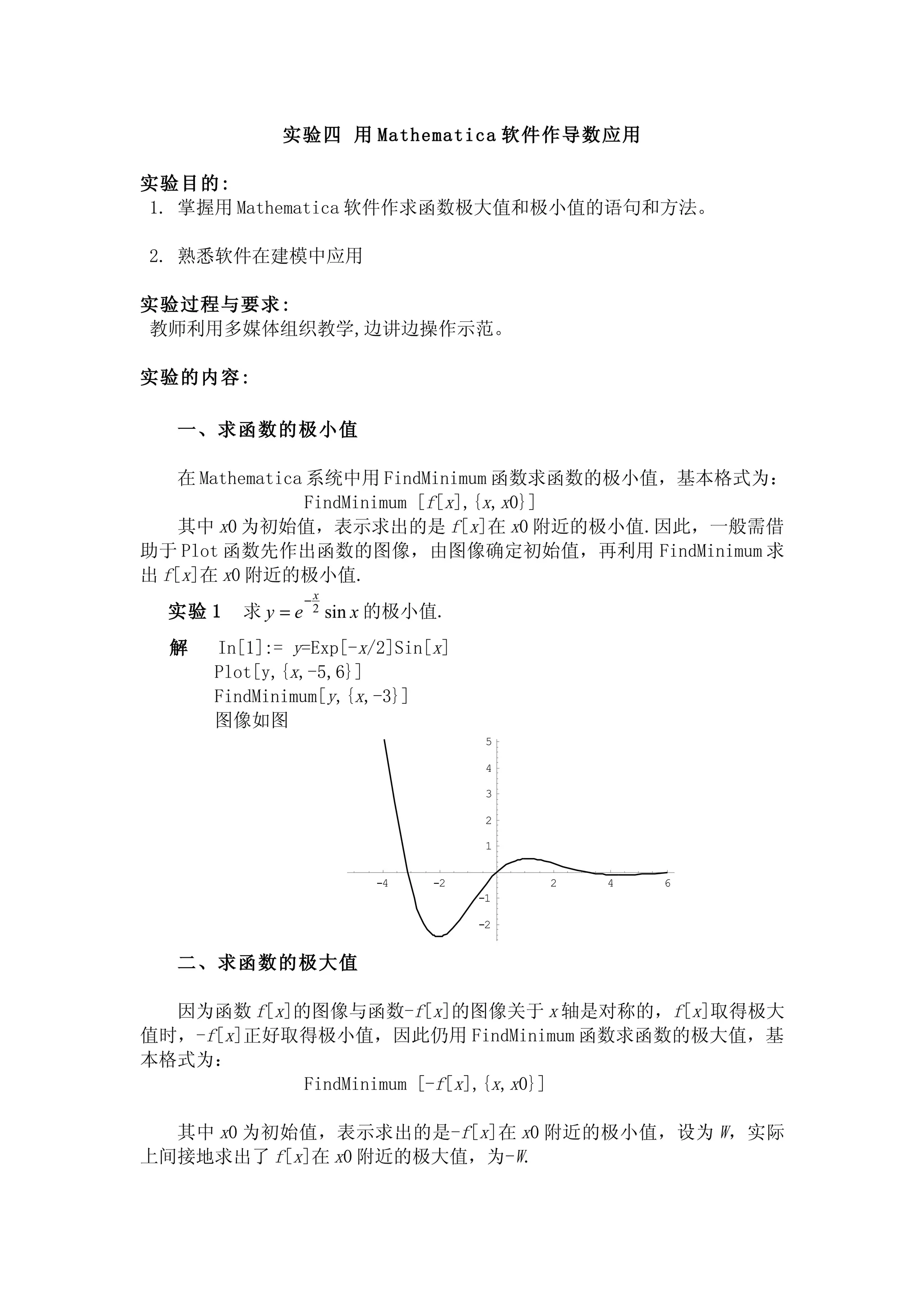 掌握求一元函数极值的驻点法,掌握 求极小值的命令 Mathematica