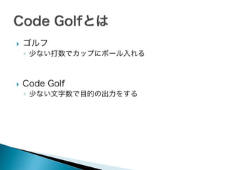 コードゴルフ 〜今日から始める難読コードの世界〜