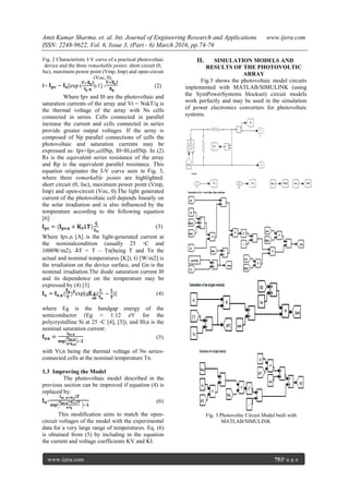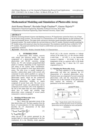 This paper presents a mathematical modeling and simulation of photovoltaic (PV) arrays essential for addressing power demands and resource depletion. It details a power electronics-based simulation model that accounts for factors affecting the non-linear voltage-current characteristics of PV modules, validated with a 36 W PV module. The findings show improved accuracy in the model, demonstrating its effectiveness under varying temperature and irradiance conditions.