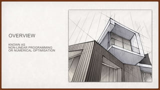 The document provides an overview of mathematical optimisation, detailing its applications in various fields such as manufacturing, finance, and engineering, alongside its historical development from linear programming to more complex forms like semidefinite programming. It also covers fundamental concepts, problem types, and practical examples of optimisation in areas including data fitting and portfolio optimisation. The text highlights the importance of convex optimisation, robust methods, and advancements in computational techniques for solving complex optimisation problems.