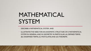 - DESCRIBE AMATHEMATICAL SYSTEM; AND