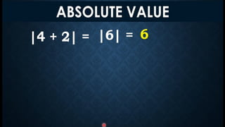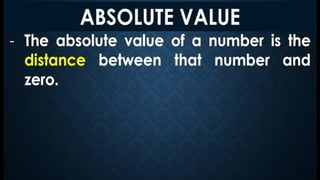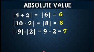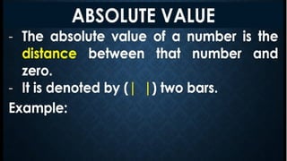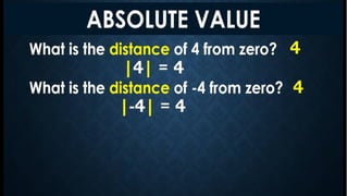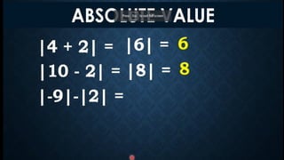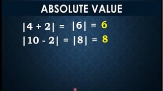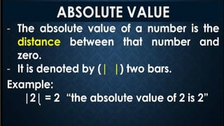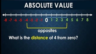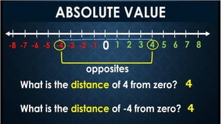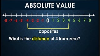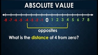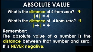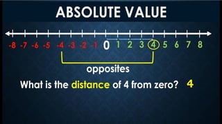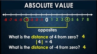 The document provides an interactive math lesson focusing on absolute values, opposites, and inequalities. It includes various activities and examples for students to practice identifying absolute values, comparing integers, and solving equations. The lesson encourages engagement through word searches and fill-in-the-blank exercises.