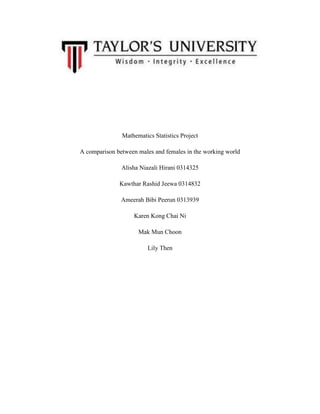 This document summarizes the results of a survey comparing males and females in the working world. The survey included 200 participants, with equal numbers of males and females. Some key findings from the survey include: