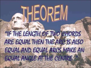 A circle is defined as all points in a plane that are equidistant from a fixed center point. The center point is called the center of the circle, and the fixed distance from the center is called the radius. The longest chord that can be drawn through the center is the diameter. If two chords of a circle are equal in length, then their distances from the center are also equal, as proven using the Side-Side-Side congruence rule for triangles.