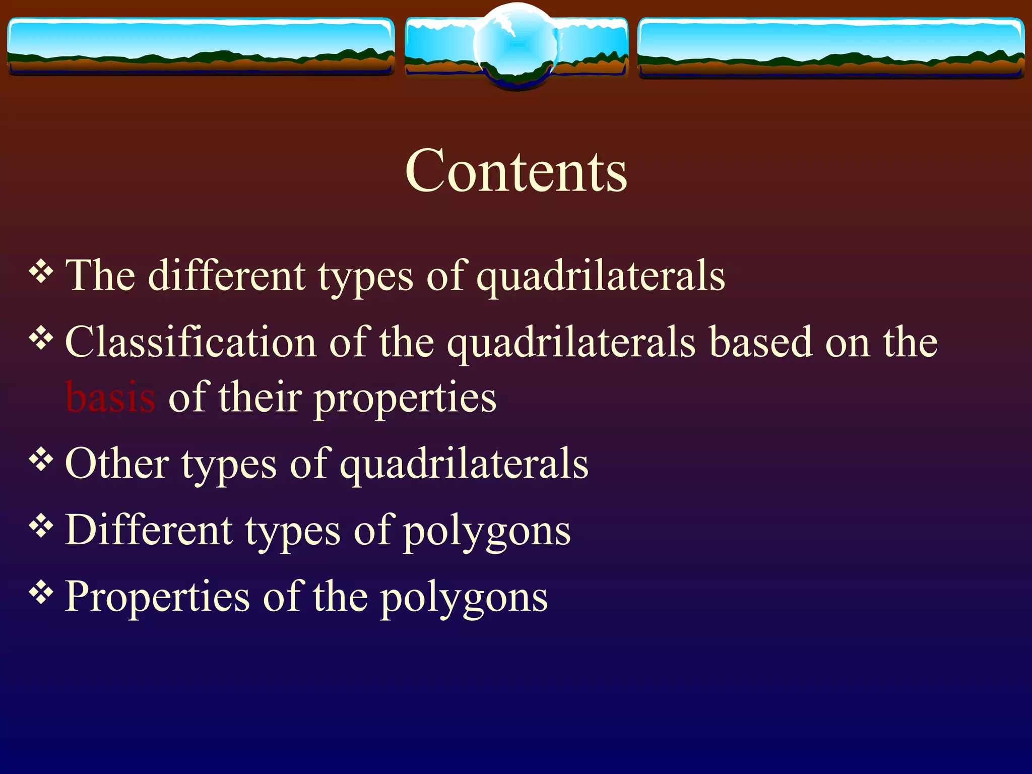 This document summarizes different types of quadrilaterals and polygons. It describes the key properties that define squares, rectangles, rhombi, parallelograms, trapezoids, and other uncommon quadrilaterals. It then discusses properties of regular polygons like pentagons, hexagons, octagons, and decagons, including their interior angles, areas, and constructability.