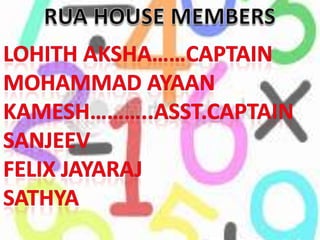 This document outlines the structure and questions for 5 rounds of a math quiz competition between teams. Round 1 involves teams answering questions in turn. Round 2 is a rapid fire round with 5 questions asked of each team in 15 seconds. Round 3 is a buzzer round where the first team member to signal can answer. Round 4 presents true/false statements for teams to evaluate. Round 5 involves teams solving 3 math sums within 90 seconds. The rounds cover topics like perfect squares, square roots, cubes, and exponents.