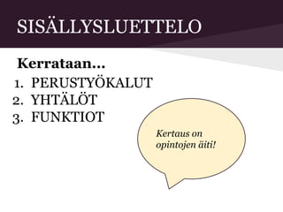 taulukkokirjan kaavoista ja laskusäännöistä.
