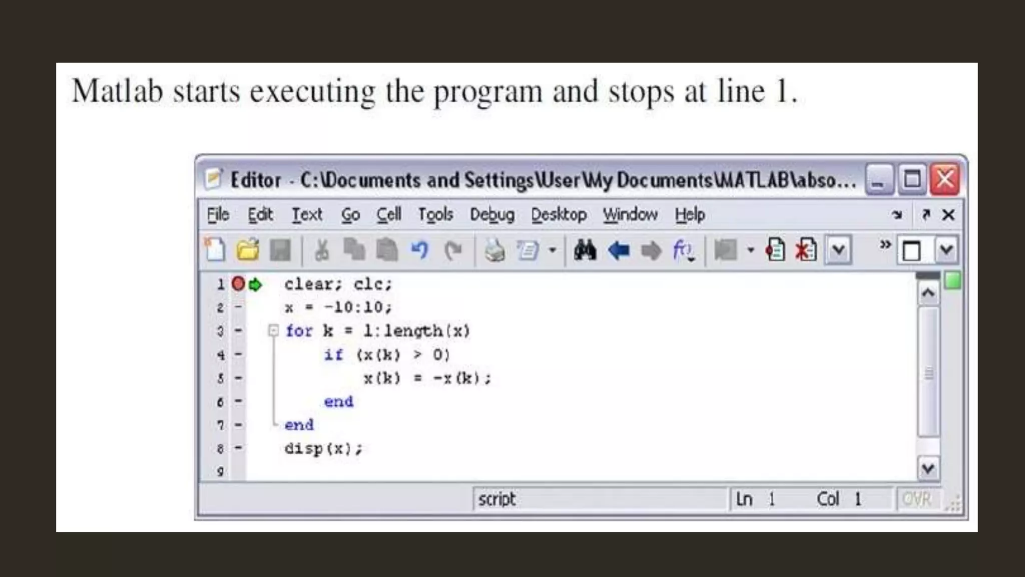 MATLAB is a powerful programming language for technical computing. It allows matrix manipulation, plotting of functions and data, implementation of algorithms, creation of user interfaces, and interfacing with programs in other languages. Some key features of MATLAB include its matrix-based data structure, built-in math and engineering functions, programming tools for algorithm development and testing, and integrated development environment. MATLAB also provides tools for debugging and optimizing code performance such as breakpoints, stepping through code, and the profiler.
