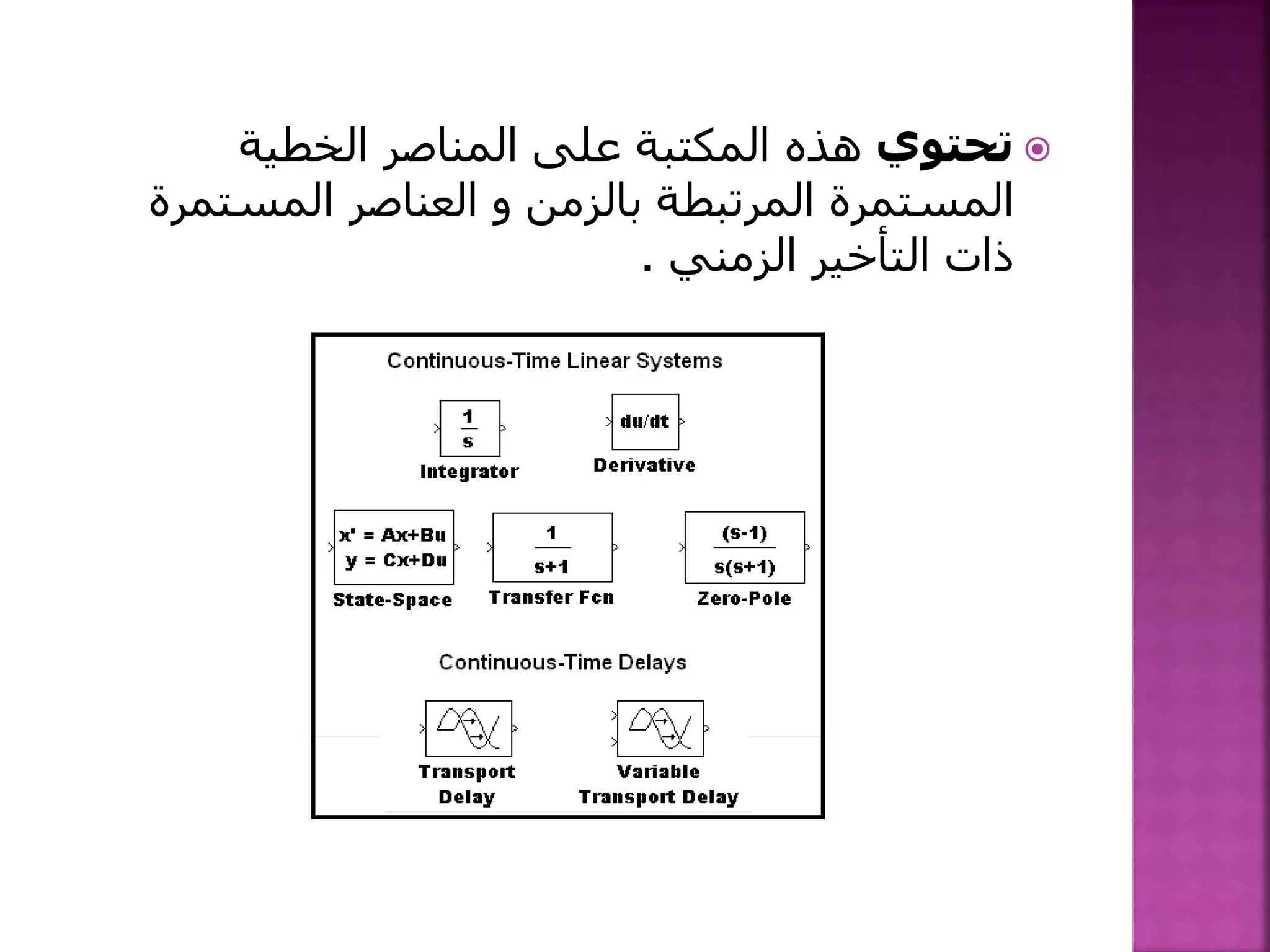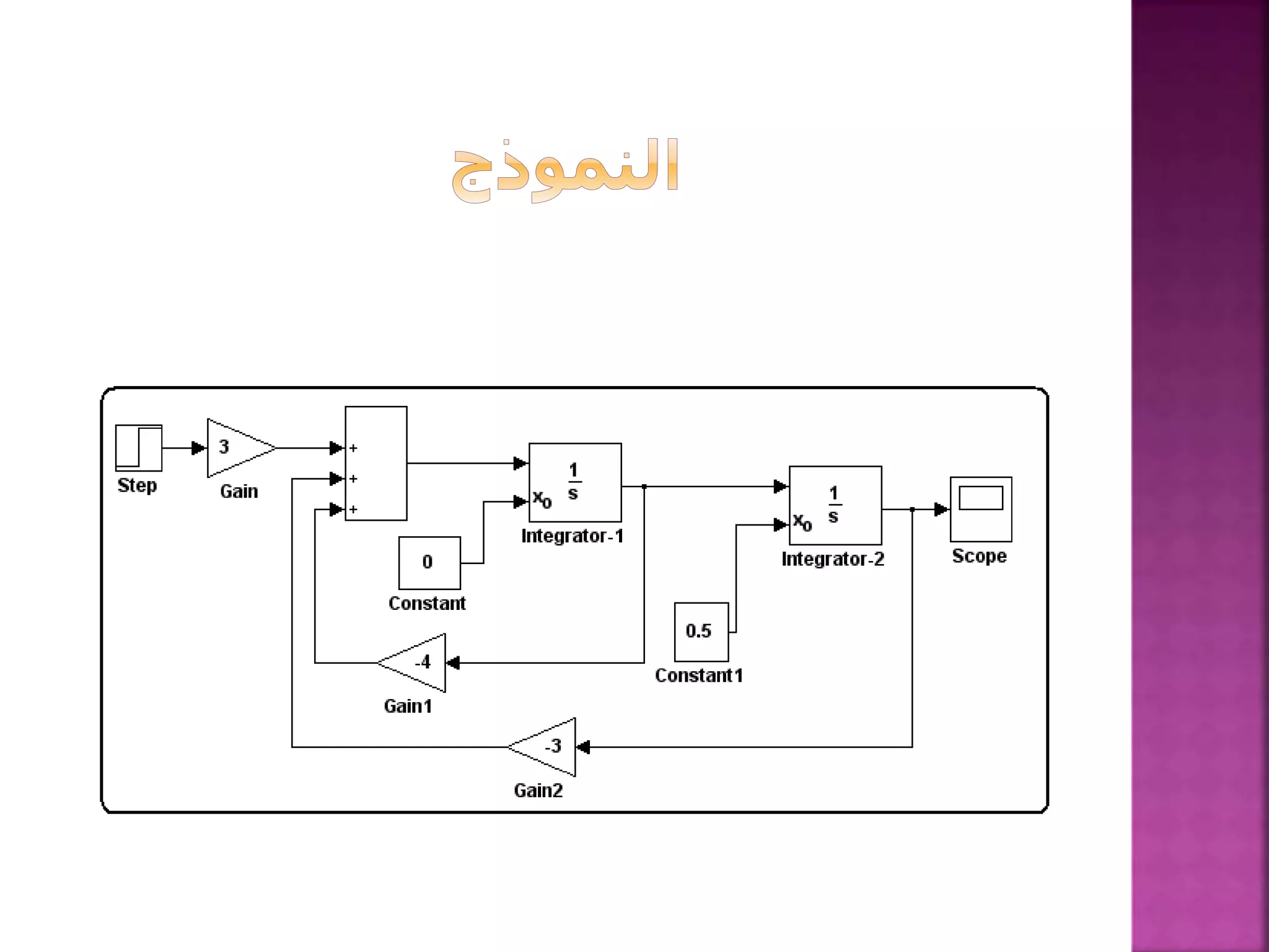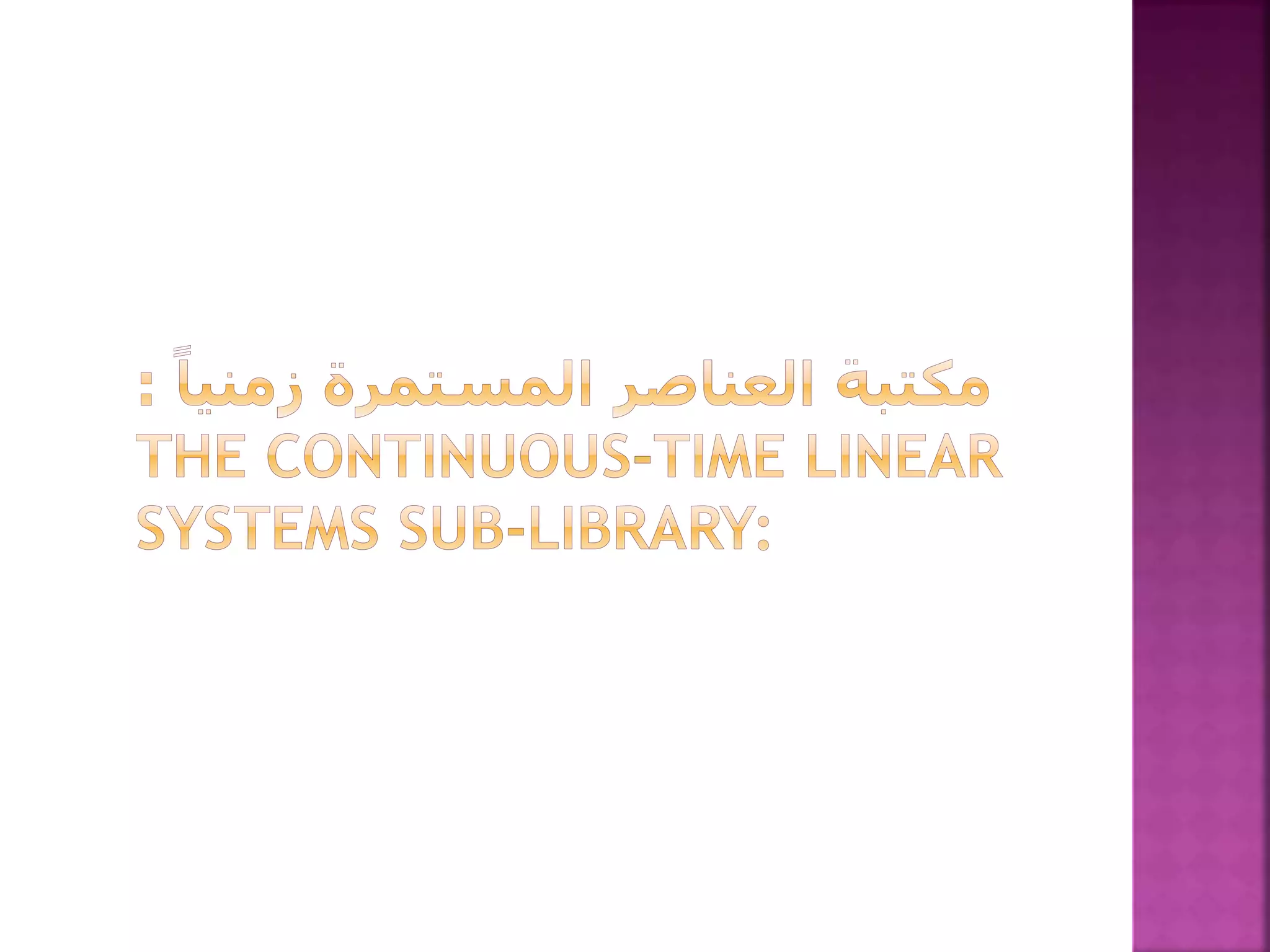 يتناول الوثيقة مفهوم التكامل في المعادلات التفاضلية، موضحًا كيفية بناء نموذج تكاملي بناءً على شروط ابتدائية وخصائص العناصر المستخدمة. يتضمن الوثيقة خطوات لحل المعادلات من خلال عملية تجميع العناصر وإدخال إشارات معينة لضبط النتائج. كما يوضح استخدام simulink لتصميم الأنظمة الديناميكية مع التركيز على العمليات المطبقة على العناصر التفاعلية.