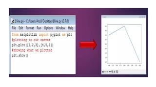 The document provides an overview of different types of graphs and charts in data visualization using the pyplot module from matplotlib. It explains line graphs, bar charts, scatter plots, histograms, and pie charts, detailing their uses, structure, and the types of data they represent. Each graph serves a specific purpose, such as showing trends, comparing categories, or illustrating part-whole relationships.