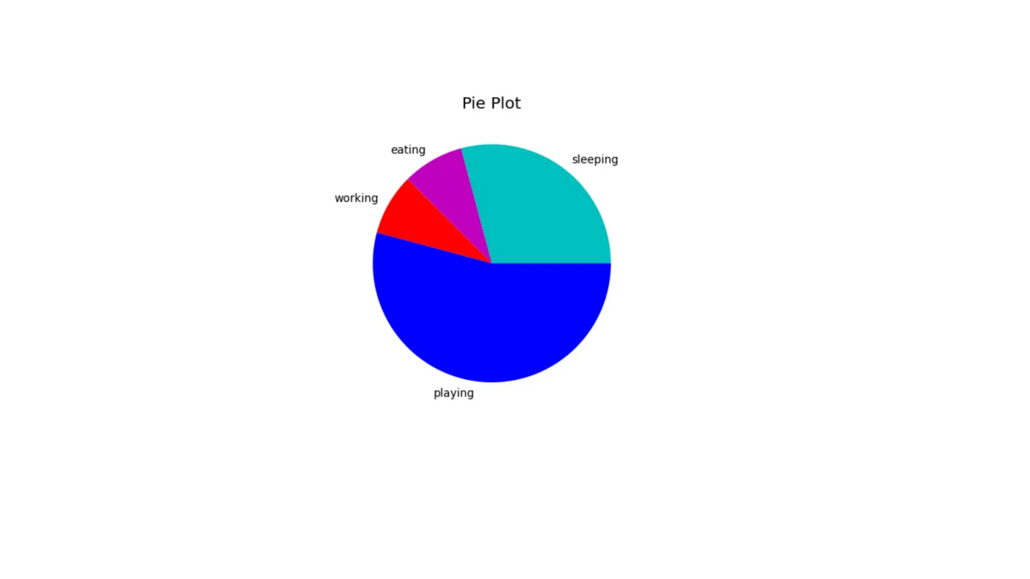 activities = ['sleeping’, 'eating’, 'working’, 'playing’] #lables of pie plot