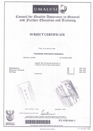 MATRIC CERT