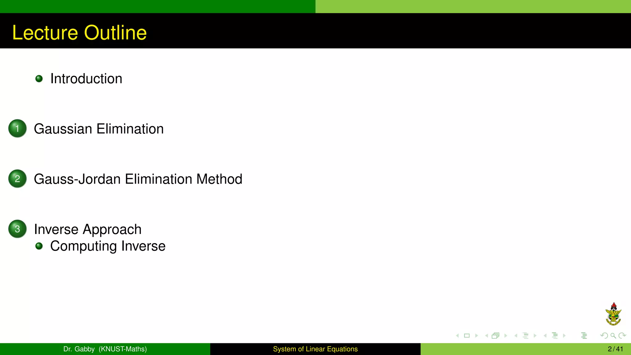 The document provides an introduction to solving systems of linear equations using Gaussian elimination. It defines linear systems and the matrix formulation. Gaussian elimination transforms the coefficient matrix into upper triangular form through elementary row operations. The method is then demonstrated on an example system. Key steps include choosing pivots, making entries below the pivot zero, and ultimately solving the system using back substitution.