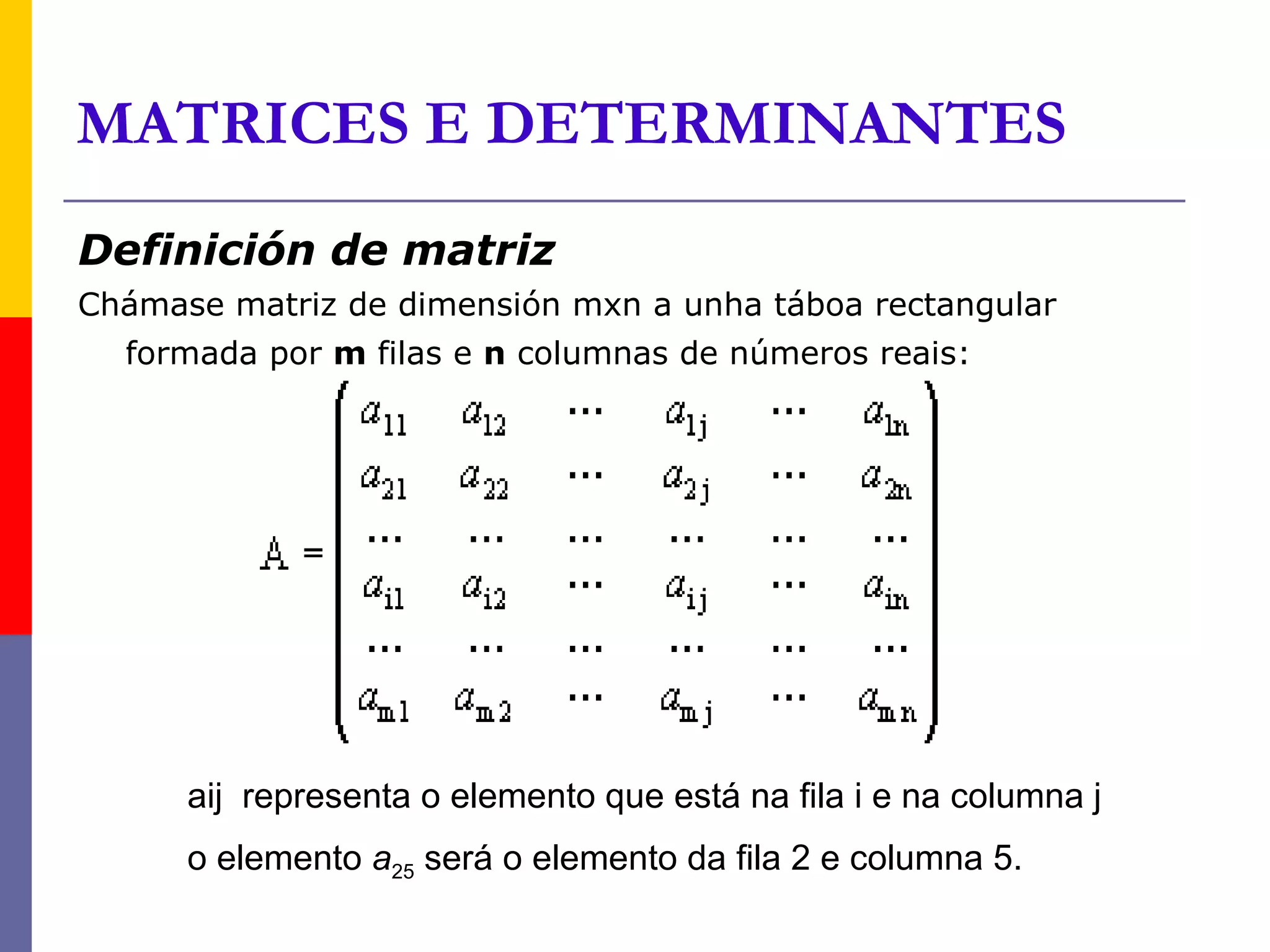 Chámase matriz de dimensión mxn a unha táboa rectangular