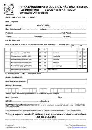 FITXA D’INSCRIPCIÓ CLUBGIMNÀSTICA RÍTMICA