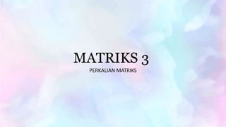 Dokumen ini membahas tentang perkalian matriks dengan bilangan real dan perkalian matriks dengan matriks lain. Siswa disarankan untuk menyalin materi ini ke buku matematika dan mengerjakan tugas yang diberikan guru. Guru akan melakukan pengecekan secara berkala.