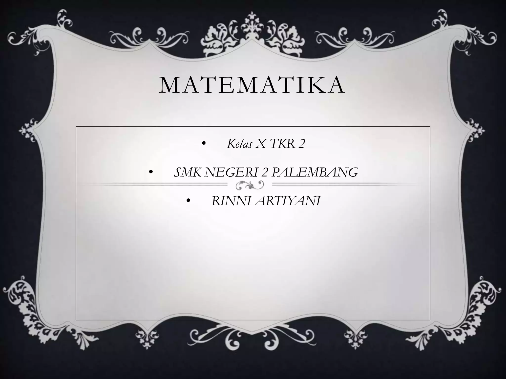 Dokumen tersebut membahas tentang materi matriks pada pelajaran matematika kelas X TKR 2 di SMK Negeri 2 Palembang. Materi yang dibahas meliputi pengertian matriks, operasi penjumlahan dan pengurangan matriks, serta syarat-syarat penjumlahan dan pengurangan matriks. Peserta didik diminta untuk membuat soal operasi penjumlahan dan pengurangan matriks.