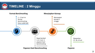 The document outlines criteria for thesis guidelines across various universities, including aspects such as thesis supervision, formatting, data sources, and timelines. It specifies a timeline for benchmarking presentations with deadlines for preparation and meetings. Overall, it aims to standardize the thesis process and ensure clarity in its execution.