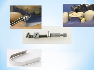 This document discusses different types of matrices used in restorative dentistry. It describes the purpose of matrices in confining restorative materials and establishing proper contacts and contours. Several common matrix types are outlined, including Tofflemire, copper band, and custom made matrices. The key components, indications, advantages and disadvantages of each matrix type are provided.