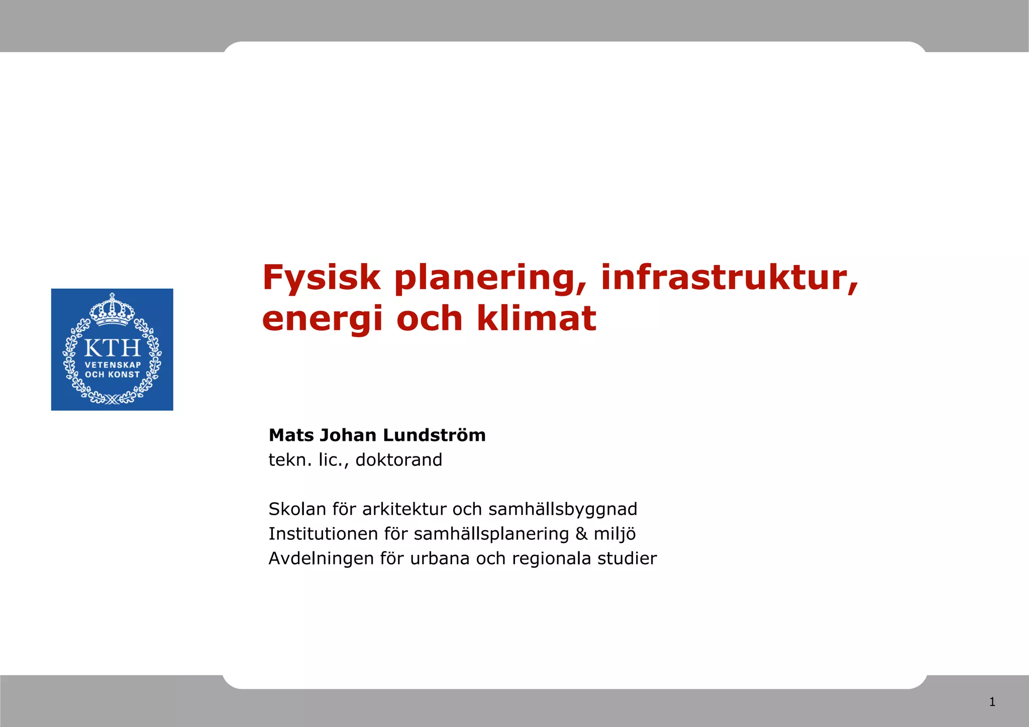 • Behov av bred medverkan (politiker, energi-/trafikbolag,