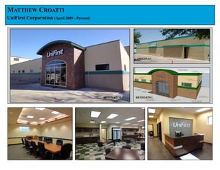 Matthew Croatti has worked as an architect for UniFirst Corporation since 2009, where he has led renovation and expansion projects for facilities in Fort Worth, Austin, and San Antonio, Texas as well as Nashville, Tennessee. Previously, he worked for The Related Group from 2007-2009 on residential projects in Atlanta, Georgia and Miami, Florida. He received his education from Texas A&M University and the University of Miami.