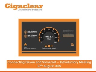 This document compares broadband internet packages from BT Unlimited and Gigaclear. BT Unlimited offers packages that rely on copper wiring with download speeds up to 76 Mbps, while Gigaclear uses fiber optic cables to offer speeds up to 940 Mbps. Gigaclear packages are generally more expensive but do not have line rental fees. An online survey found that existing Gigaclear customers were satisfied with the reliability and speed of the connection. Gigaclear is focused on building fiber networks in rural areas with unsatisfied demand through both commercial and subsidized investments.