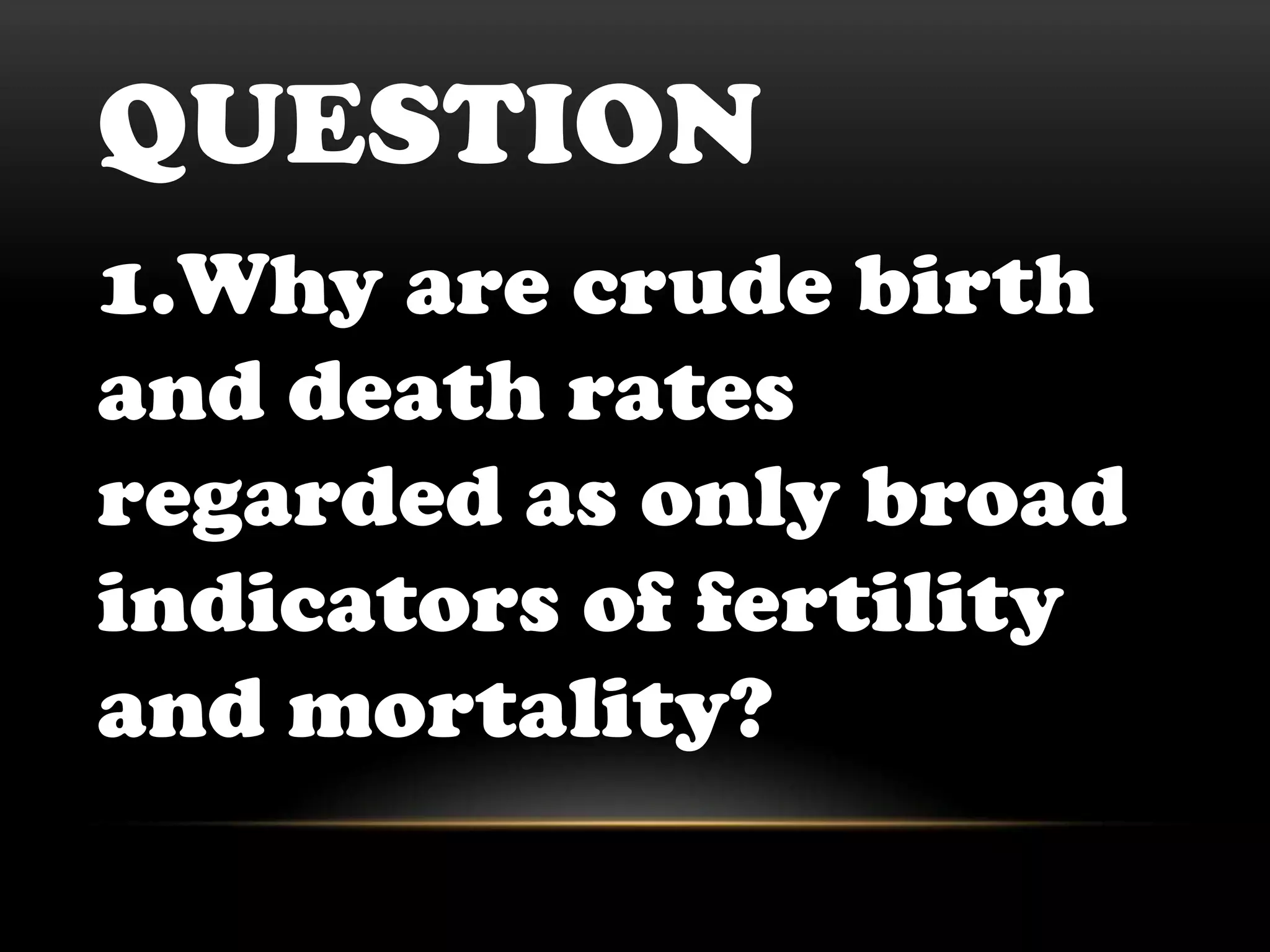 Crude birth and death rates are only broad indicators of fertility and mortality because they do not account for the age and sex distribution of the population. Specifically, crude rates do not consider whether people are within child-bearing ages, which most impacts fertility, or whether deaths are occurring among those past child-bearing years, which does not impact fertility. As such, crude rates alone do not provide a full picture of fertility and mortality trends.