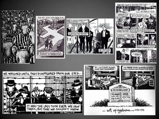 Maus is a graphic novel by Art Spiegelman published in 1980 that details his father's experience as a Holocaust survivor. It took Spiegelman 13 years to complete and is viewed as an important work that brought serious attention to graphic novels. In Maus, Nazis are depicted as cats, Jews as mice, and Poles as pigs. The book won a Pulitzer Prize in 1992, being the first graphic novel to do so. It explores themes of guilt, survival, and race through Spiegelman's interviews with his father and flashbacks to his father's time in Nazi concentration camps.