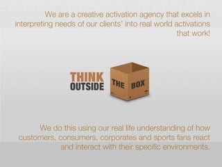 Maverick is a creative activation agency specializing in transforming client needs into real-world activations through a deep understanding of consumer interactions across various environments. With 15 years of experience, they focus on delivering flawless execution of innovative ideas for events, promotions, and sponsorships, positioning themselves as experts in activating brands effectively. Their portfolio includes work with global sports tournaments and significant events, leveraging local and international expertise to ensure success.