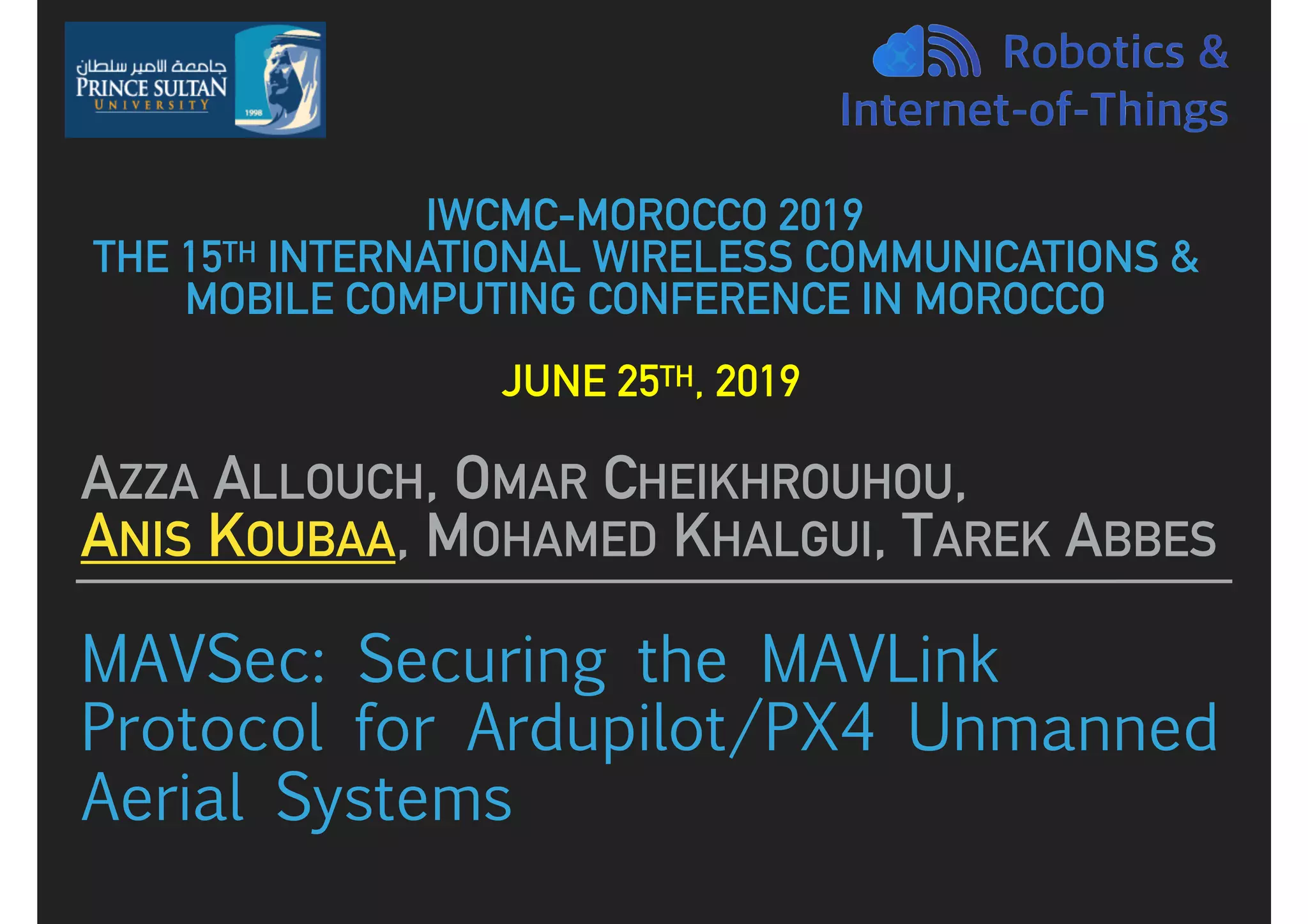 The document discusses the MAVSEC project, which aims to secure the MAVLink protocol used in ArduPilot and PX4 unmanned aerial systems. It details features of the MAVLink protocol, including its packet structure and various message types used for communication between drones and ground control stations. The paper also highlights the importance of securing this communication for applications in the Internet of Drones and smart city initiatives.