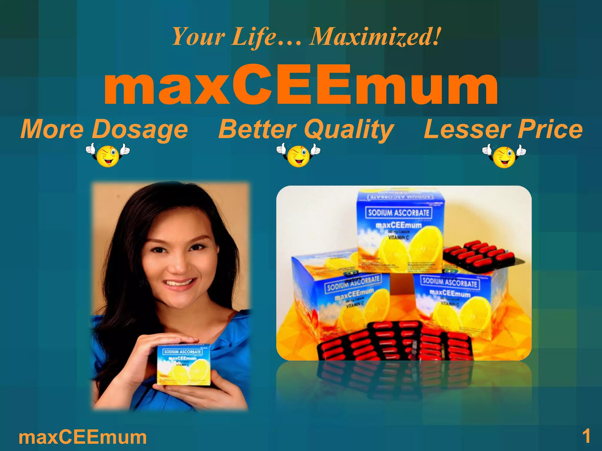 Maxceemum Corporation promotes its sodium ascorbate product, Maxceemum, as an affordable and effective vitamin C supplement aimed at improving health and wellness. The company focuses on multi-level marketing (MLM) strategies to provide distributors with passive income opportunities through product sales and referrals. The document outlines various health benefits of vitamin C, compares pricing, and highlights the MLM income potential for various distributor levels.