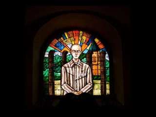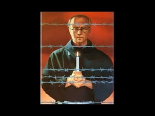 Maximilian Kolbe was a Polish priest who lived during World War 2. He sheltered 2000 Jews from the Nazis and spoke out against them on his pirate radio station. He was arrested and sent to Auschwitz concentration camp. When a man escaped from his barracks, the commander selected 10 men to starve as punishment. Kolbe volunteered to take the place of Franciszek Gajowniczek, who had a wife and children. Kolbe encouraged the men until he was the last alive, then was killed with a lethal injection. He was later canonized as a saint by Pope John Paul II for his selfless act.