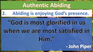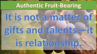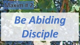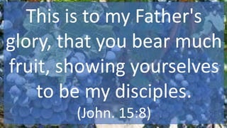 The document discusses how believers can maximize God's glory and make disciples. It encourages rejoicing in the Lord always and taking delight in Him, as this will lead to bearing fruit as His disciples and having one's desires and heart aligned with His. The overall message is that bringing joy to God through faithfulness and obedience is the path to a spiritually fruitful life.