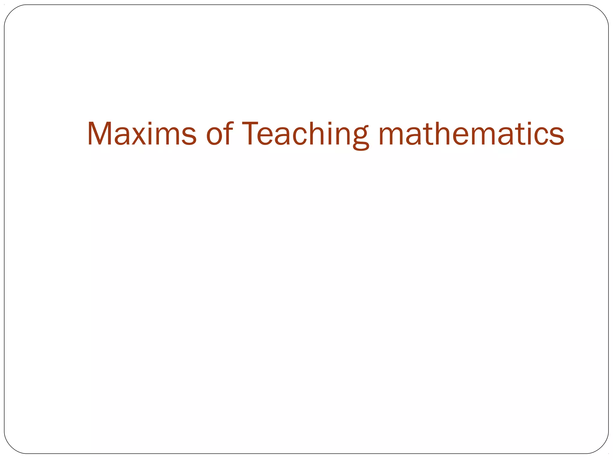 Teaching mathematics effectively requires following five maxims: 1) Beginning with concepts already known to students and building on that foundation to introduce new unknown concepts, 2) Starting with simple ideas and gradually increasing complexity, 3) Beginning with specific examples before addressing general principles, 4) Using concrete examples to demonstrate abstract concepts, 5) Presenting topics as a coherent whole before examining individual parts. These maxims help teaching be an art that effectively conveys mathematical ideas.