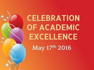 This document summarizes an academic awards ceremony at Licking Valley High School on May 17th, 2016. It recognizes students with perfect attendance and high GPAs. Various subject areas, like English, math, science, and art, awarded outstanding students in different grades. Senior scholarships were given for subjects like C-TEC, music, history, and math. The ceremony congratulated all award recipients and thanked those who attended.