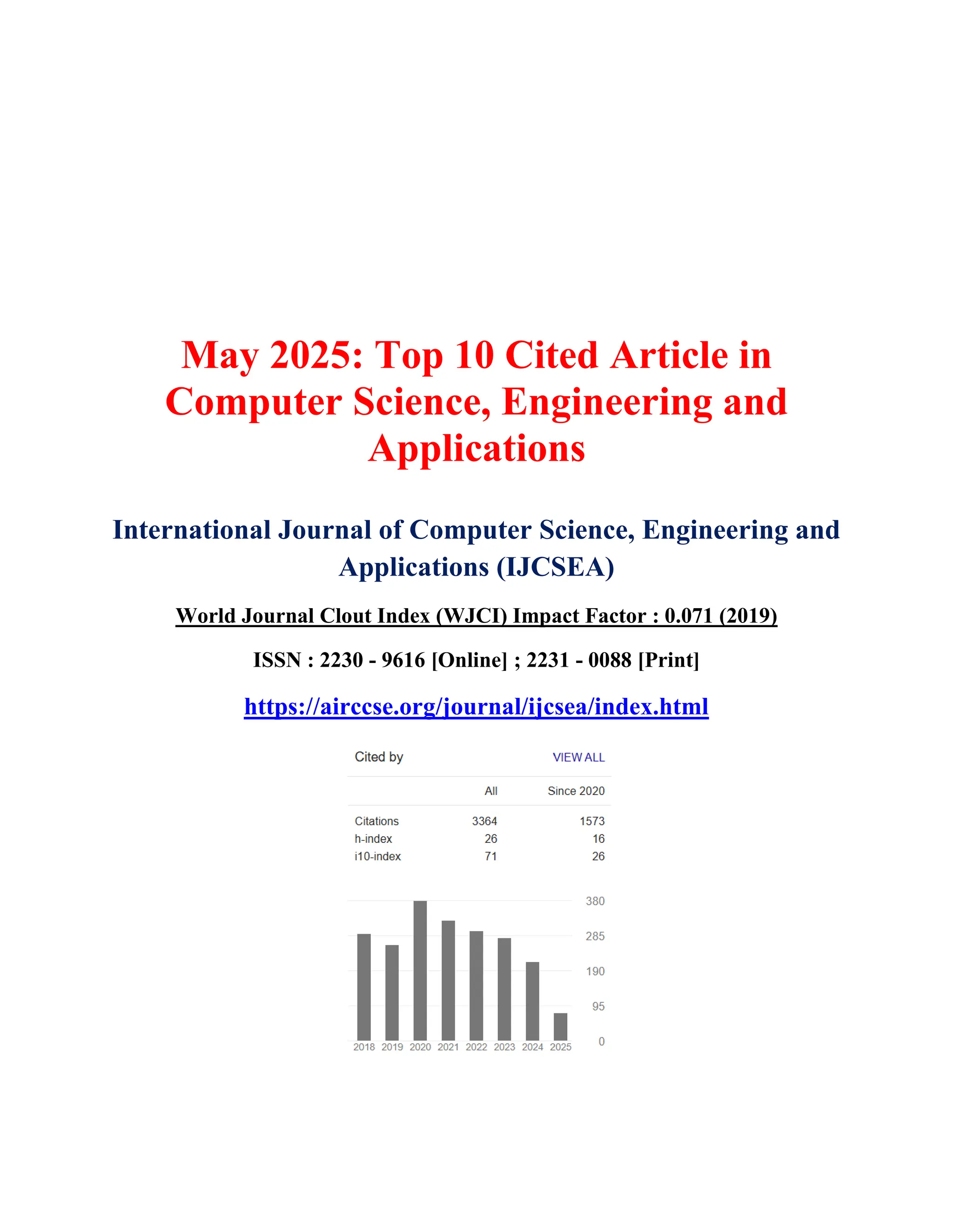 International Journal of Computer Science, Engineering and Applications (IJCSEA) is an open access peer-reviewed journal that publishes articles which contribute new results in all areas of the computer science, Engineering and Applications. The journal is devoted to the publication of high quality papers on theoretical and practical aspects of computer science, Engineering and Applications.