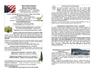 This document provides information about upcoming events at Oregon City Evangelical Church between May 23rd and 31st, including Sunday services, classes, youth groups, choir practice and prayer gatherings. It also announces a Memorial Day celebration and several summer camps including Bible learning day camps in July and August and a soccer camp in July. Cookies and crackers are requested for upcoming Vacation Bible School.