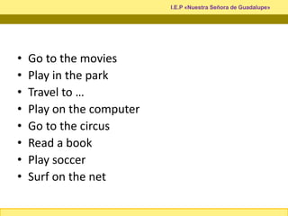 The document discusses the English expressions "may" and "might" and provides examples of their usage. It then gives exercises for students to complete using these terms by filling in blanks with "may" or "might" to indicate possible or less probable actions for different aged children - a 7 year old, 2 year old, and 10 year old.
