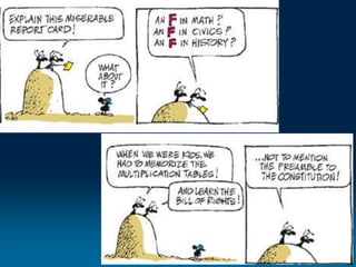 This document discusses the evolution of teaching and learning from traditional textbook-based methods to modern online and blended approaches. It begins by defining different models along a continuum from textbook to fully online, including definitions of terms like online, blended, and MOOCs. Examples are provided of what student, teacher, and content experiences might look like in textbook, technology-enhanced, web-enhanced, blended, and online environments. The importance of clear definitions and understanding how approaches differ is discussed.
