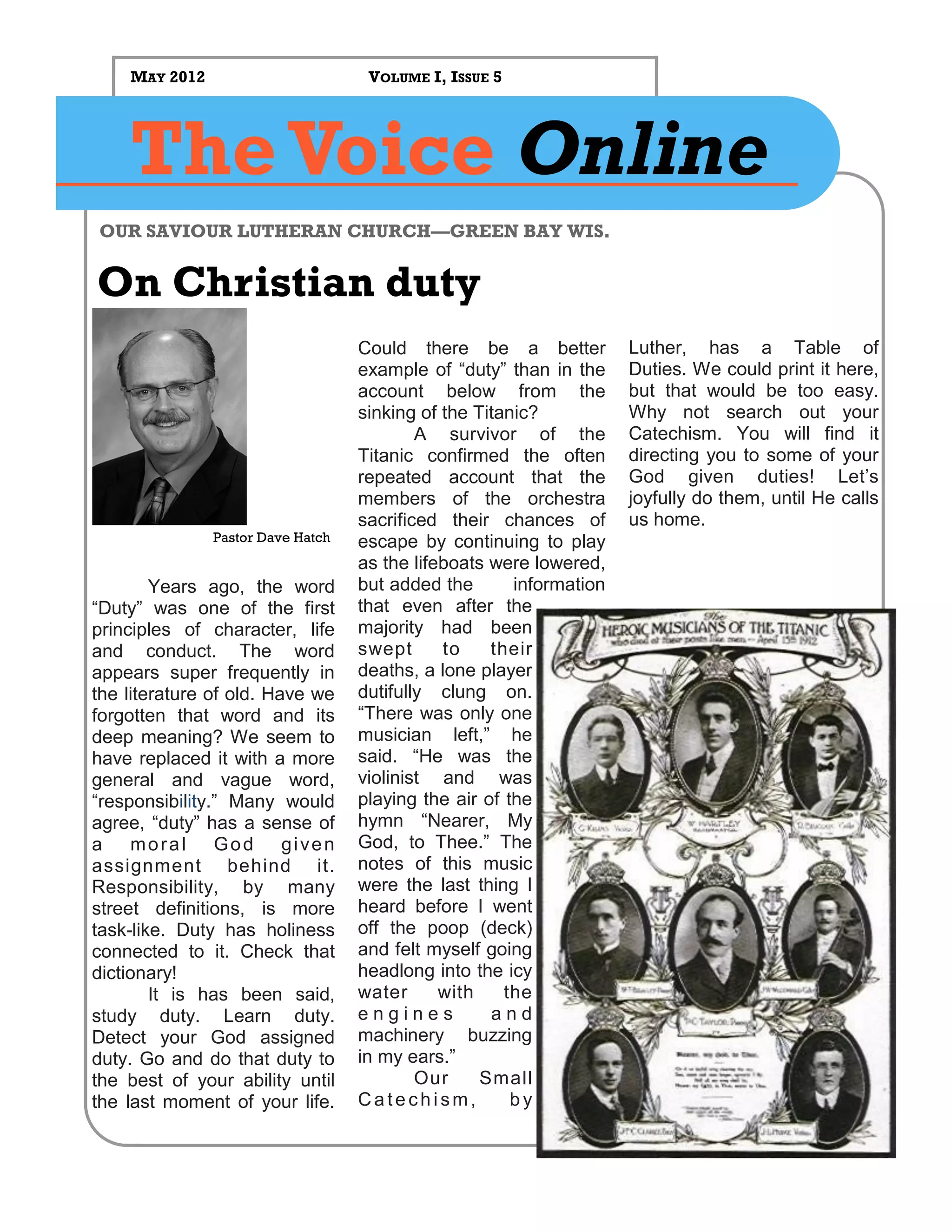 1) The Third Ladies Luncheon that will be held on May 12th featuring a performance by the Northeast Wisconsin Lutheran High School Stage One Choir.
