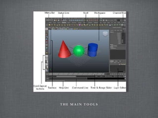 Maya is 3D modeling and animation software that allows users to create 3D computer graphics by developing mathematical representations of 3D objects and surfaces. It is used across industries like computer games, movies, medicine, engineering, science and art to create 3D models and animations. Maya introduces the user to 3D concepts and modeling and shows how Maya software is applied in different fields.