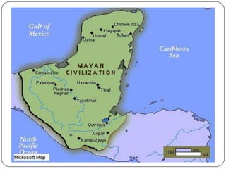 This document provides information about three ancient civilizations in the Americas: the Maya, Aztec, and Inca. It discusses the origins and locations of each civilization, as well as details about their governments, religions, architecture, and cultural practices. It also describes key events and factors that contributed to the decline of each civilization, such as disease outbreaks and conquest by Spanish colonizers. The Maya inhabited Mesoamerica and built cities with temples and pyramids. The Aztecs founded Tenochtitlan in central Mexico and practiced human sacrifice. The Inca ruled an empire from Cusco in the Andes mountains and constructed elaborate roads and sites like Machu Picchu.