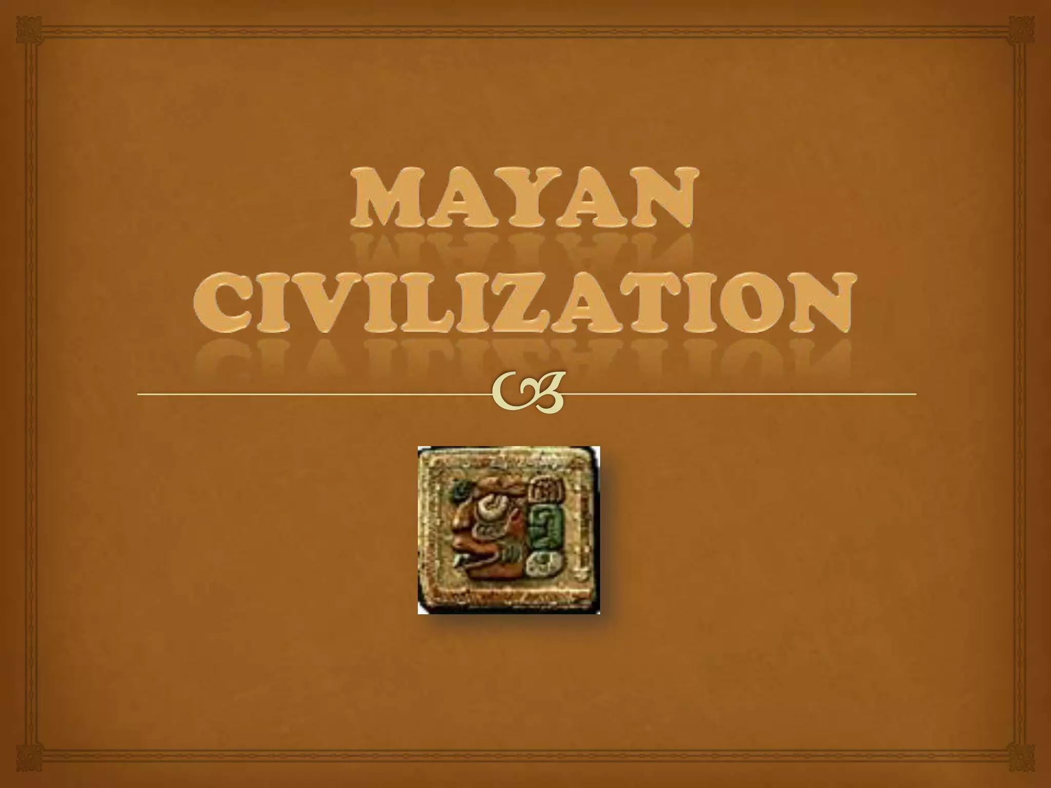 The Mayan civilization, located in Mesoamerica, developed through three periods: Preclassic, Classic, and Postclassic, each marked by advancements in culture, agriculture, and political expansion. Known for their religious practices, architecture, and significant contributions to mathematics and astronomy, the Mayans built impressive cities and established a rich economic system based on agriculture. Their society was structured with a clear hierarchy, including nobility, artisans, and farmers, and they left a legacy through their art, music, and the sacred text, Popol Vuh.