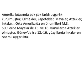 Amerika kıtasında pekçok farklı uygarlık