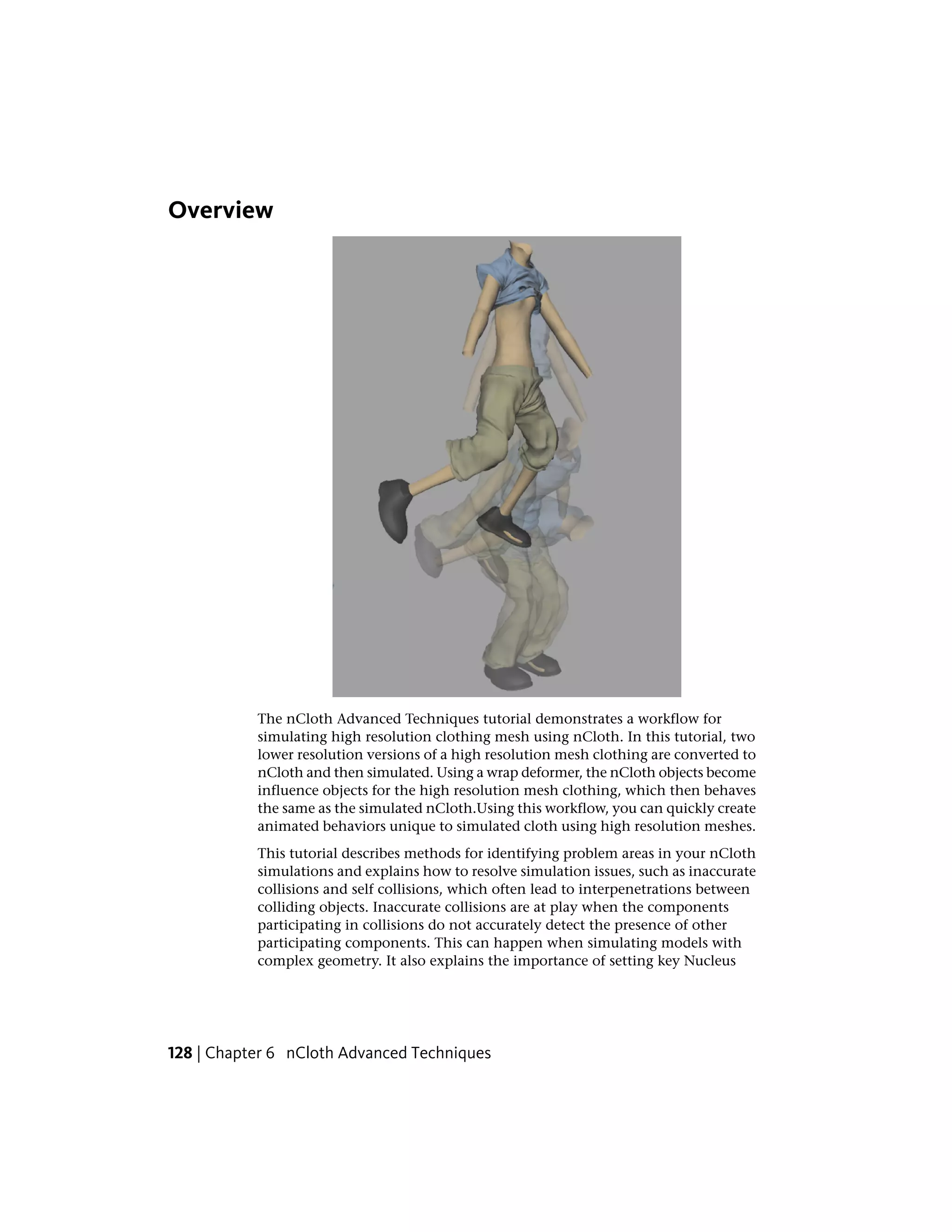 This document provides an overview of an nCloth simulation workflow that uses low resolution cloth meshes to drive the behavior of high resolution meshes. It describes converting lower resolution shirt and pants meshes to nCloth for simulation, then using a wrap deformer to transfer the simulated deformation to high resolution meshes. This allows simulating detailed cloth meshes efficiently. It also explains how to identify and resolve common simulation issues like inaccurate collisions.