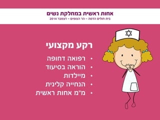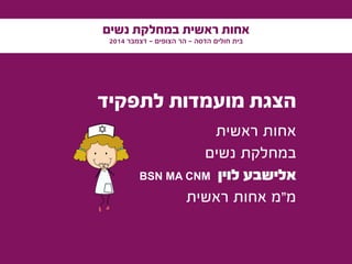 אחות 2014 דצמבר - הצופים הר - הדסה חולים בית לתפקיד מועמדות הצגת ראשית אחות נשים במחלקת BSN MA CNM לוין אלישבע ראשית אחות מ"מ