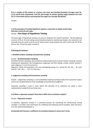 The document provides instructions for students to obtain fully solved assignments by sending their semester and specialization details via email or calling an emergency number. It outlines various statistical concepts, including classification, normal probability distribution, hypothesis testing, sampling methods, regression analysis, and business forecasting techniques. Additionally, it includes specific assignment questions related to these topics, along with solutions or evaluation criteria.