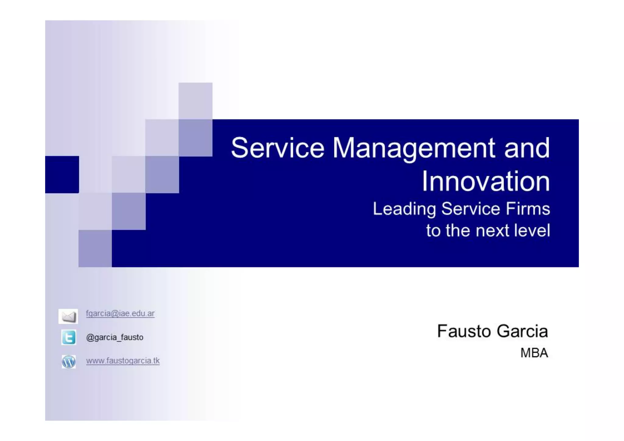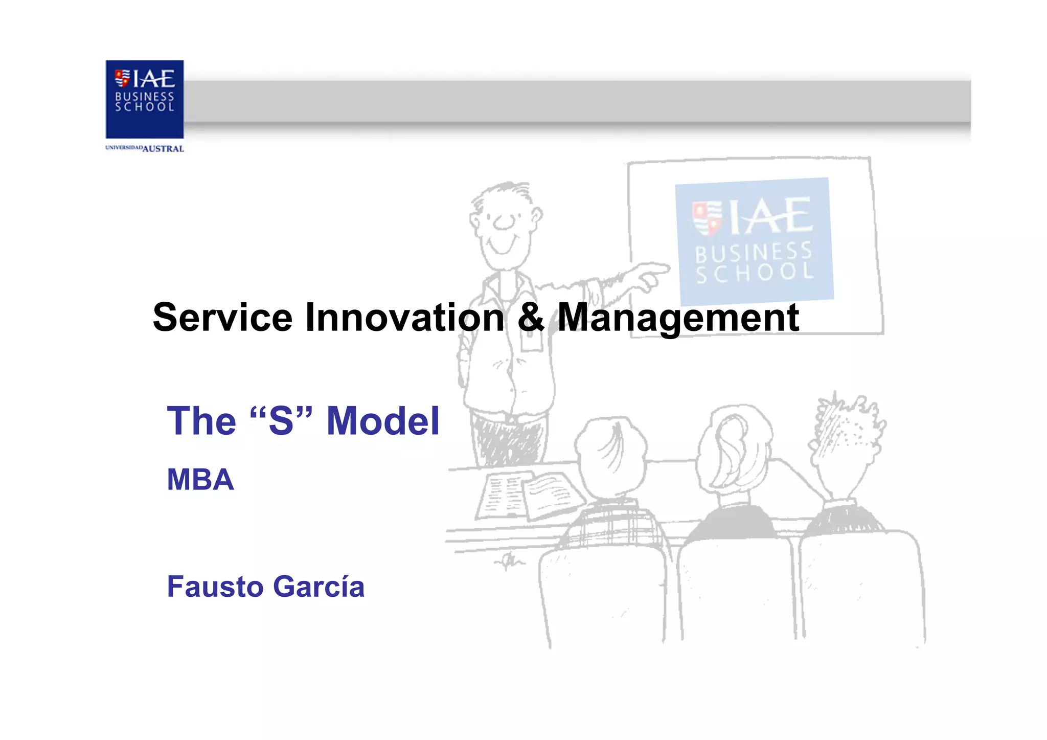 1) The document discusses a model for managing services called the "S" model. The model focuses on customer satisfaction, value for customers, delivery, and employee satisfaction to create value for the firm.