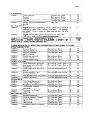This document outlines the course structure and syllabus for a Master of Business Administration (MBA) program at Jawaharlal Nehru Technological University Hyderabad. It provides details on the courses offered each semester, including course codes, titles, credits, and teaching approach. It also lists various electives that can be chosen in marketing, finance, human resources, and systems. Additionally, it recommends journals, databases, and a business management lab to enhance the students' learning experience. The goal of the MBA program is to prepare graduates for careers in management and develop their business skills and knowledge.