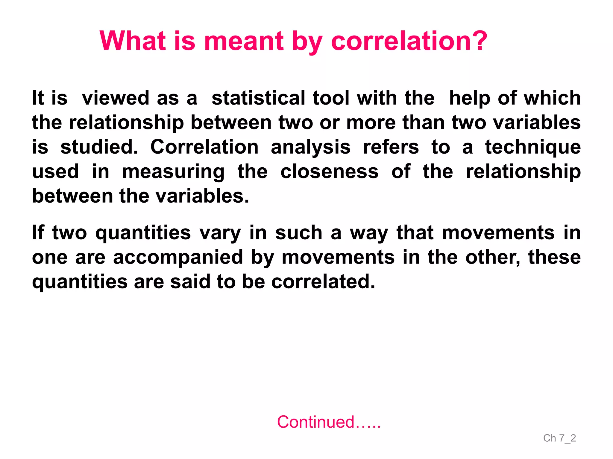 The document discusses correlation and the coefficient of correlation. It defines correlation as a statistical tool used to study the relationship between two or more variables. The coefficient of correlation (r) is a measure of the strength and direction of the linear relationship between variables. r can range from -1 to 1, where -1 is perfect negative correlation, 0 is no correlation, and 1 is perfect positive correlation. A scatter diagram can be used to visually depict the relationship between variables and provide an initial assessment of correlation.